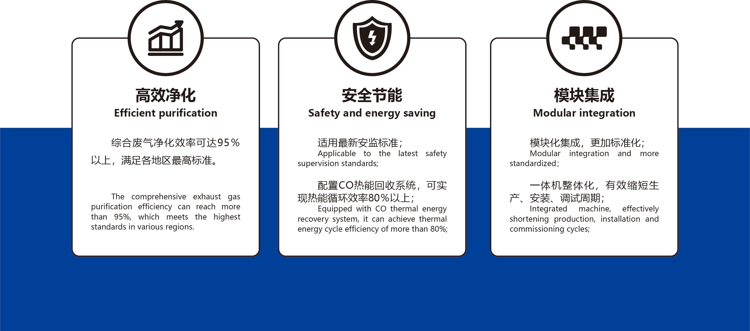 新式一体机为模块式组装结构,工艺流程更加合理,能效更稳定,治理效率更高;